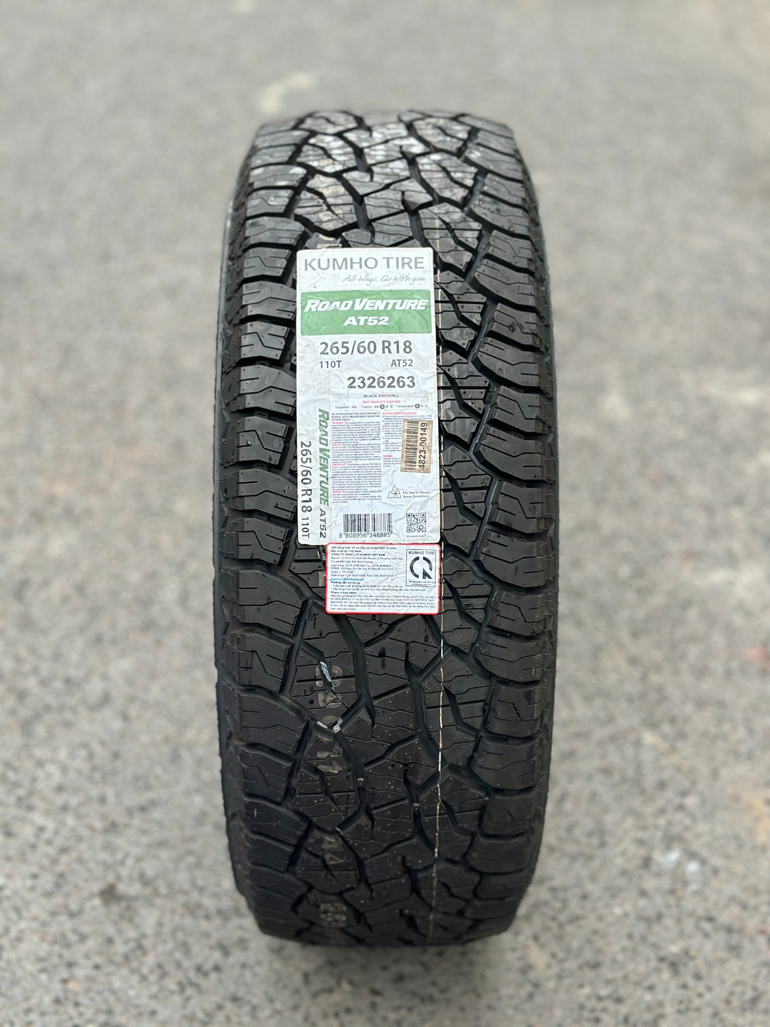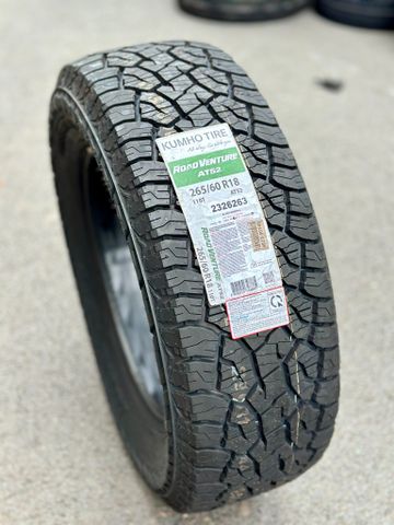 - Kumho 265/60R18 Road Venture AT52 là sản phẩm lốp thuộc dòng Road Venture AT52 mới tung ra đầu năm 2022 cho phân khúc xe địa hình với thiết kế mạnh mẽ, độ bền và các đặc tính vận hành chính. Dòng sản phẩm được tung ra tại Việt Nam cùng thời điểm với các thị trường lớn trên thế giới như Mỹ, Úc, Canada,... Road Venture AT52 là kỳ vọng tuyệt vời thay thế cho AT51 hiện tại.