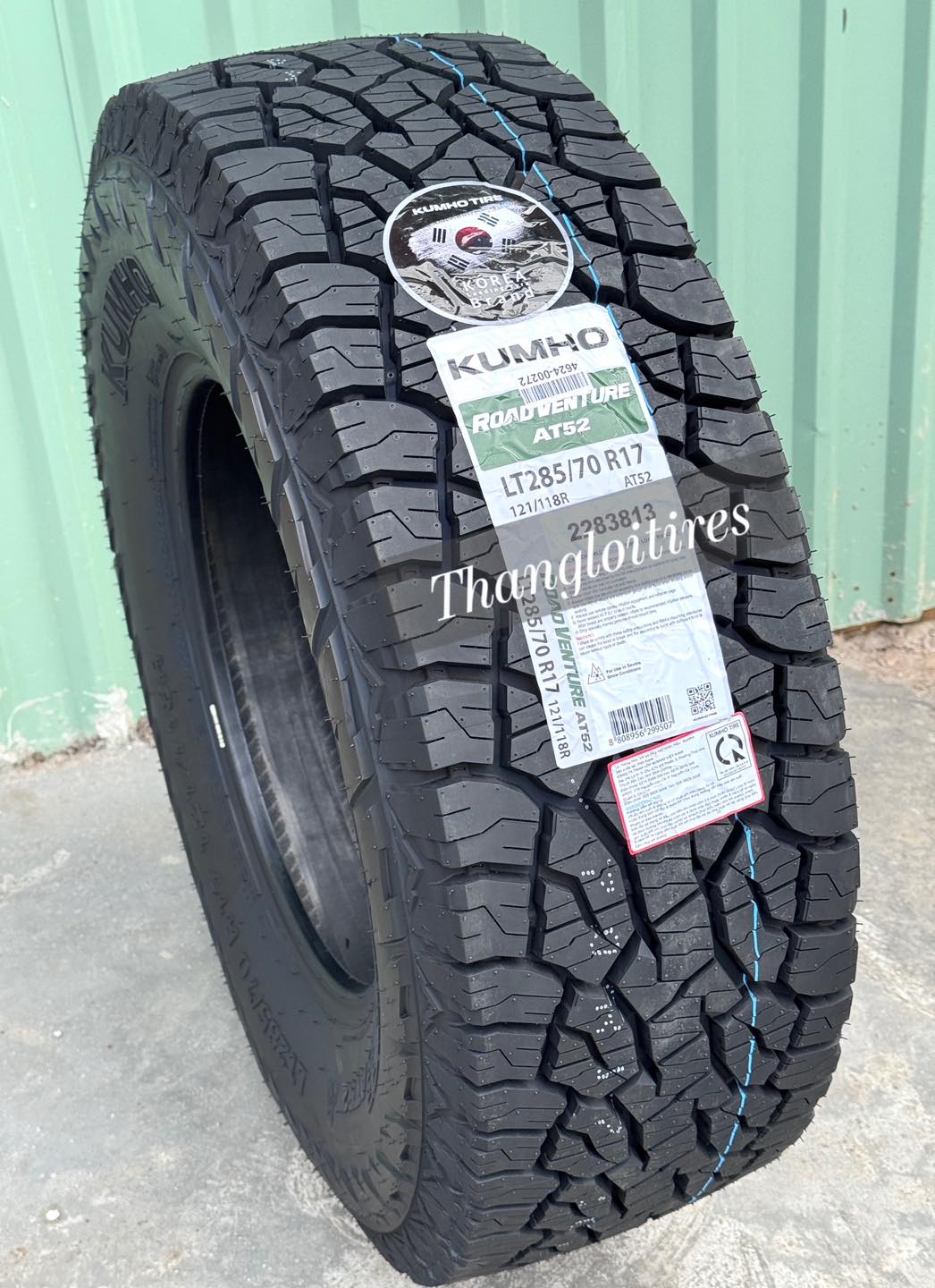 - Kumho 285/70R17 Road Venture AT52 là sản phẩm lốp thuộc dòng Road Venture AT52 mới tung ra đầu năm 2022 cho phân khúc xe địa hình với thiết kế mạnh mẽ, độ bền và các đặc tính vận hành chính. Dòng sản phẩm được tung ra tại Việt Nam cùng thời điểm với các thị trường lớn trên thế giới như Mỹ, Úc, Canada,... Road Venture AT52 là kỳ vọng tuyệt vời thay thế cho AT51 hiện tại.
